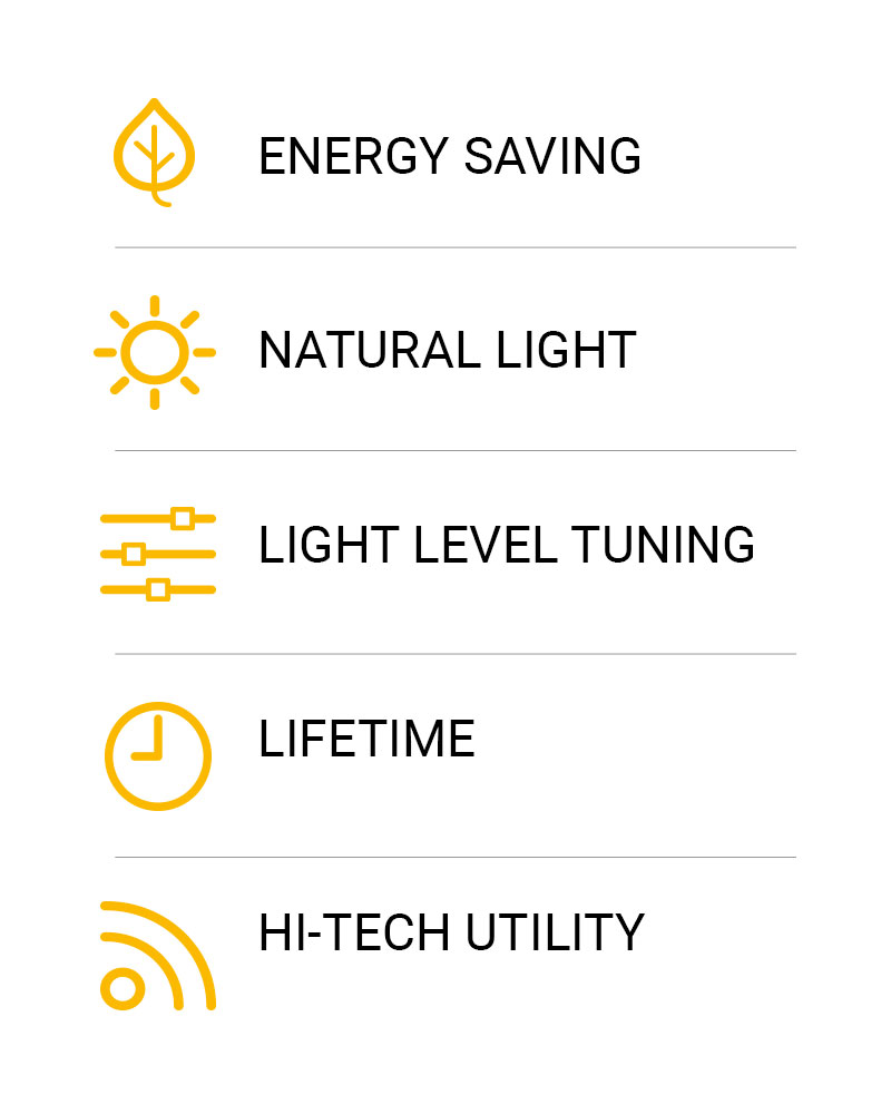When using modern light management systems we have a correct use of light fittings and considerable advantages: