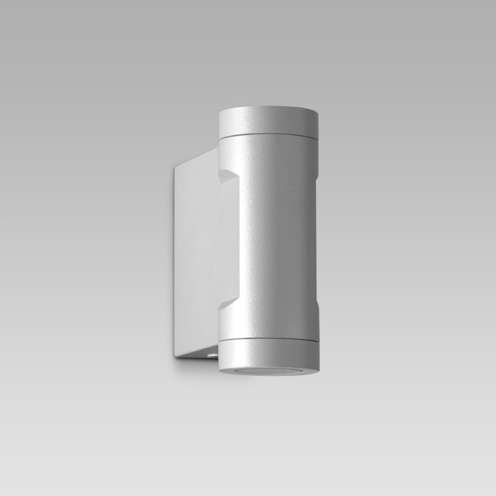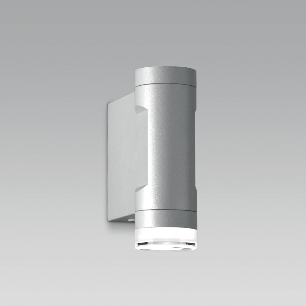 Wall-mounted luminaire for facade lighting. Thanks to the variety of mono or bidirectional optics, the compact lines, the range of colours and the high quality of light, it is suitable for numerous lighting projects: it is perfect for enhancing the facades of buildings and monuments with accent lighting aimed at emphasizing architectural details.