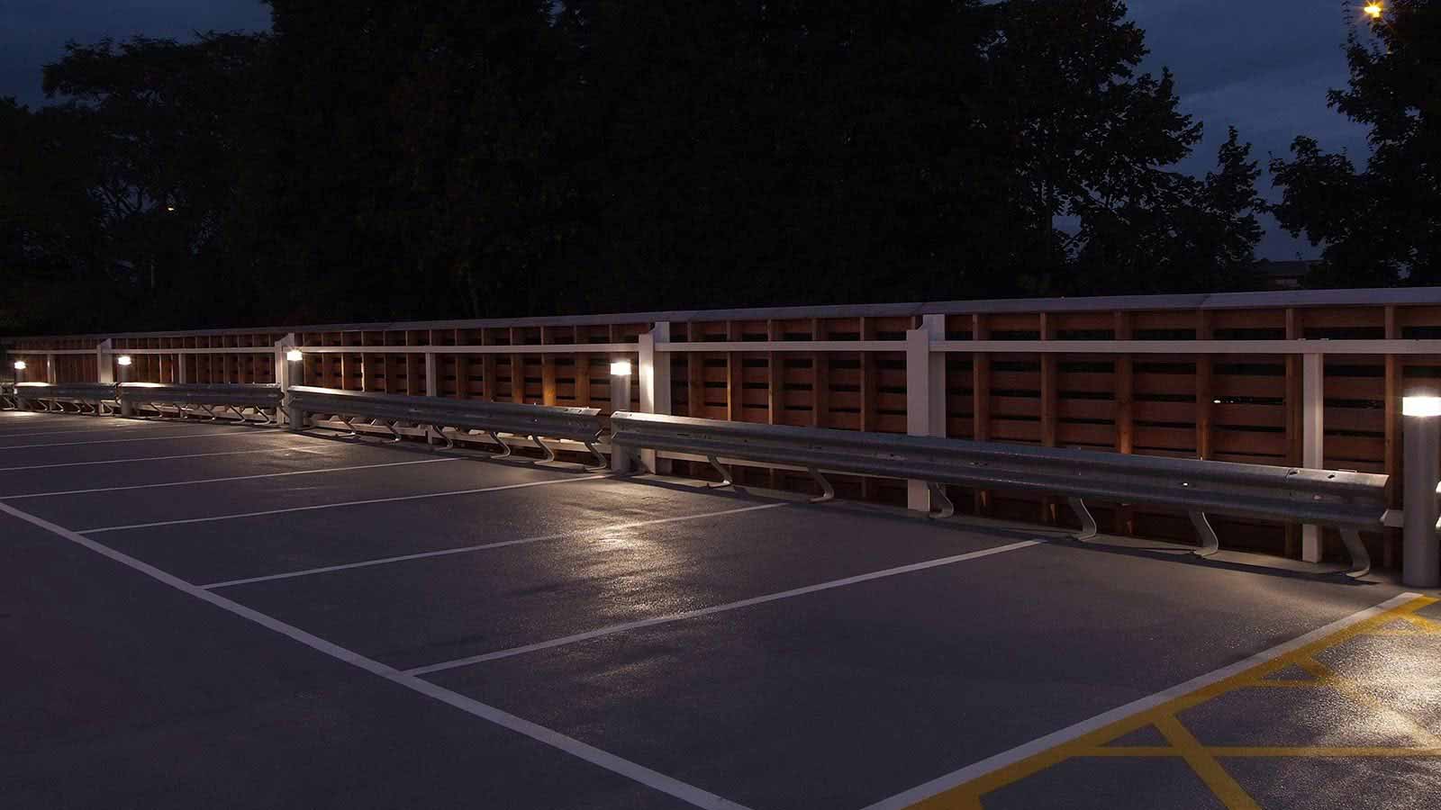 NADIR fittings are installed on the pillars due to their light diffusion and illuminate the whole length of the structure, and enhance the aesthetic of the geometric shape.