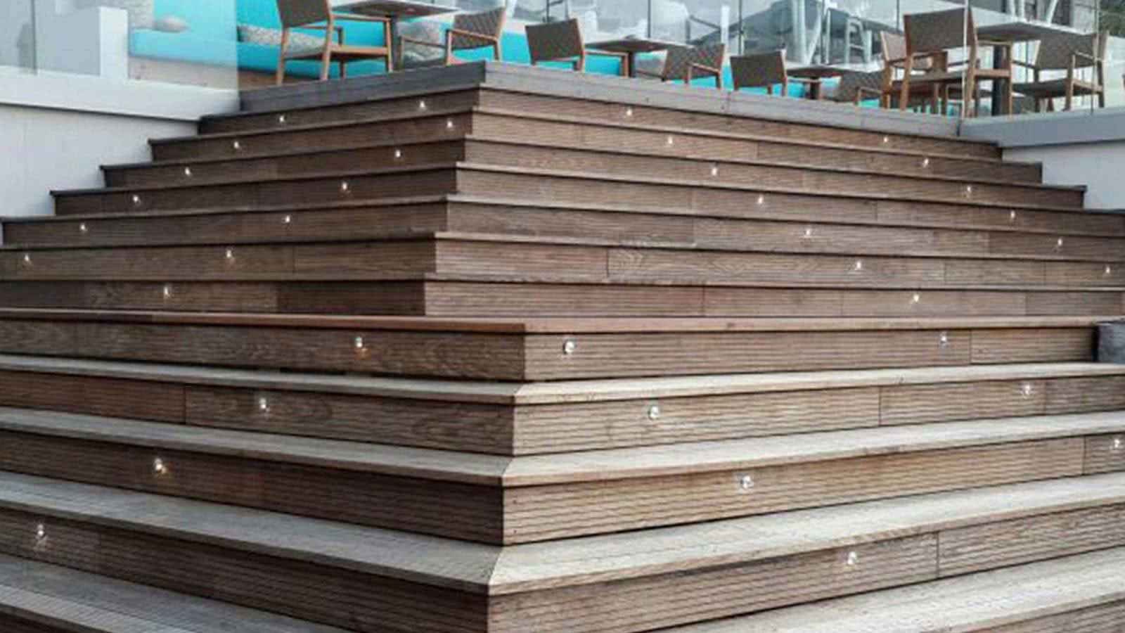 Recessed luminaires Thunder 25 used to illuminate one of the entrance staircases of the Kuramathi Island Resort in the Maldives.